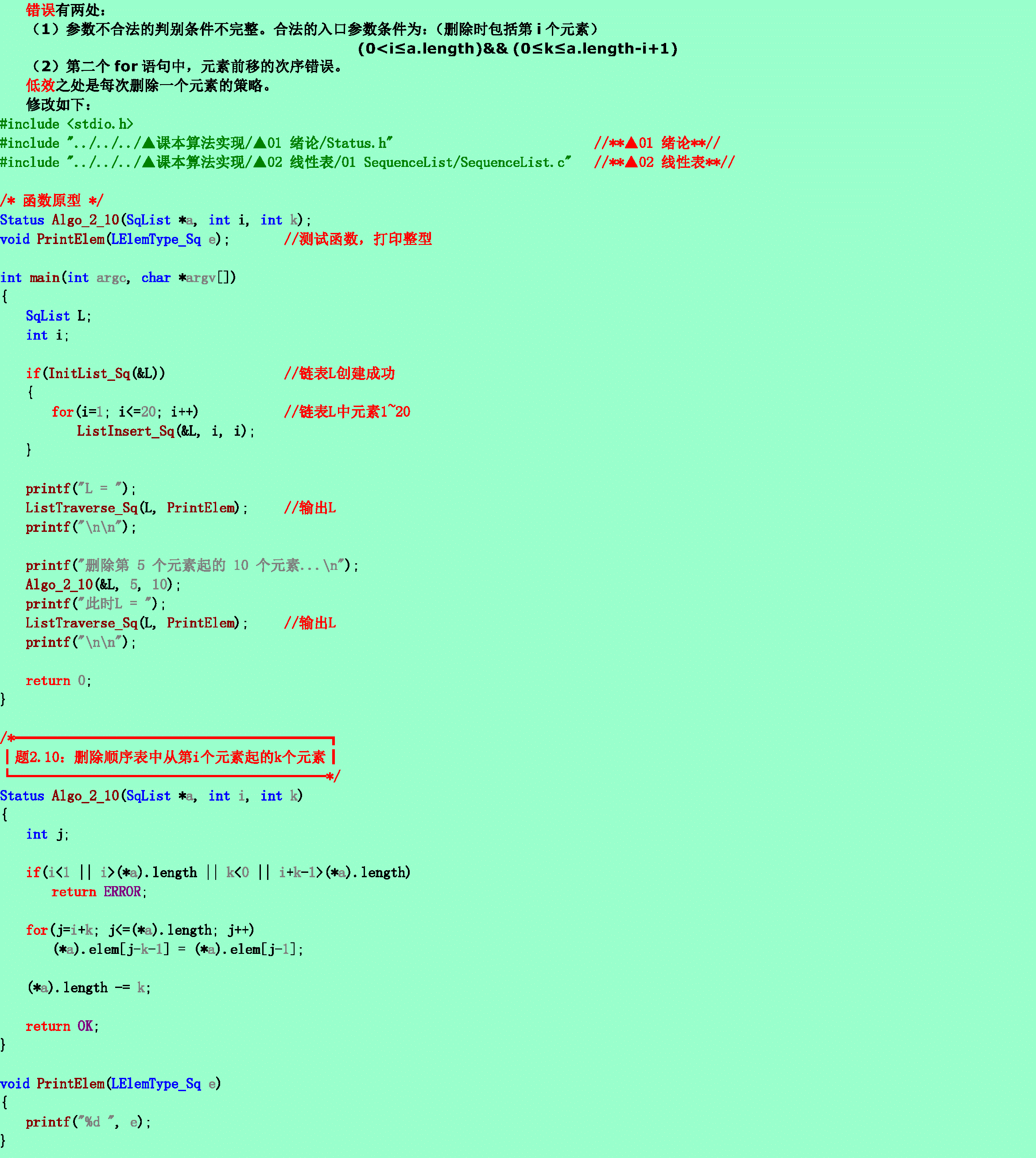 问题3.从顺序表中删除从第i个元素起的k个元素