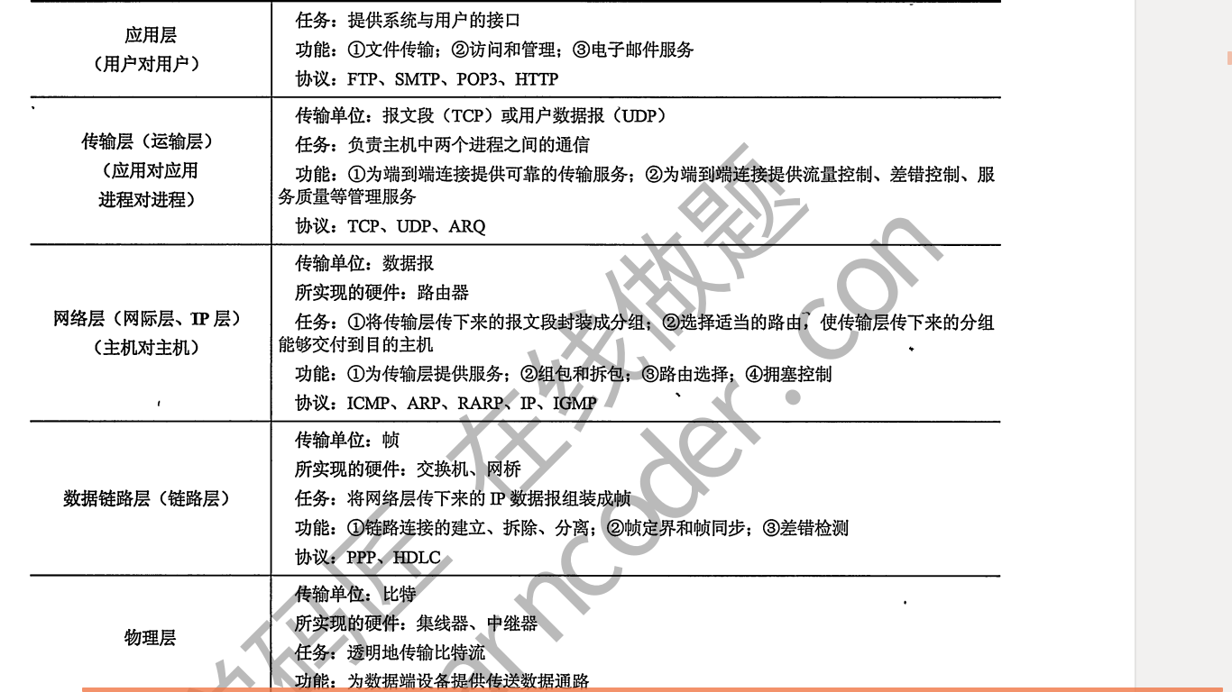 注意:通信子网包括物理层,数据链路层和网络层